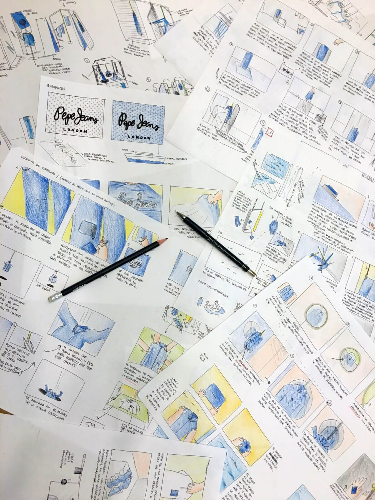Para este proyecto Studio Pomba creó el set design de las diferentes prendas vaqueras de la colección. Además, elaboró todo el storyboard de la pieza audiovisual.